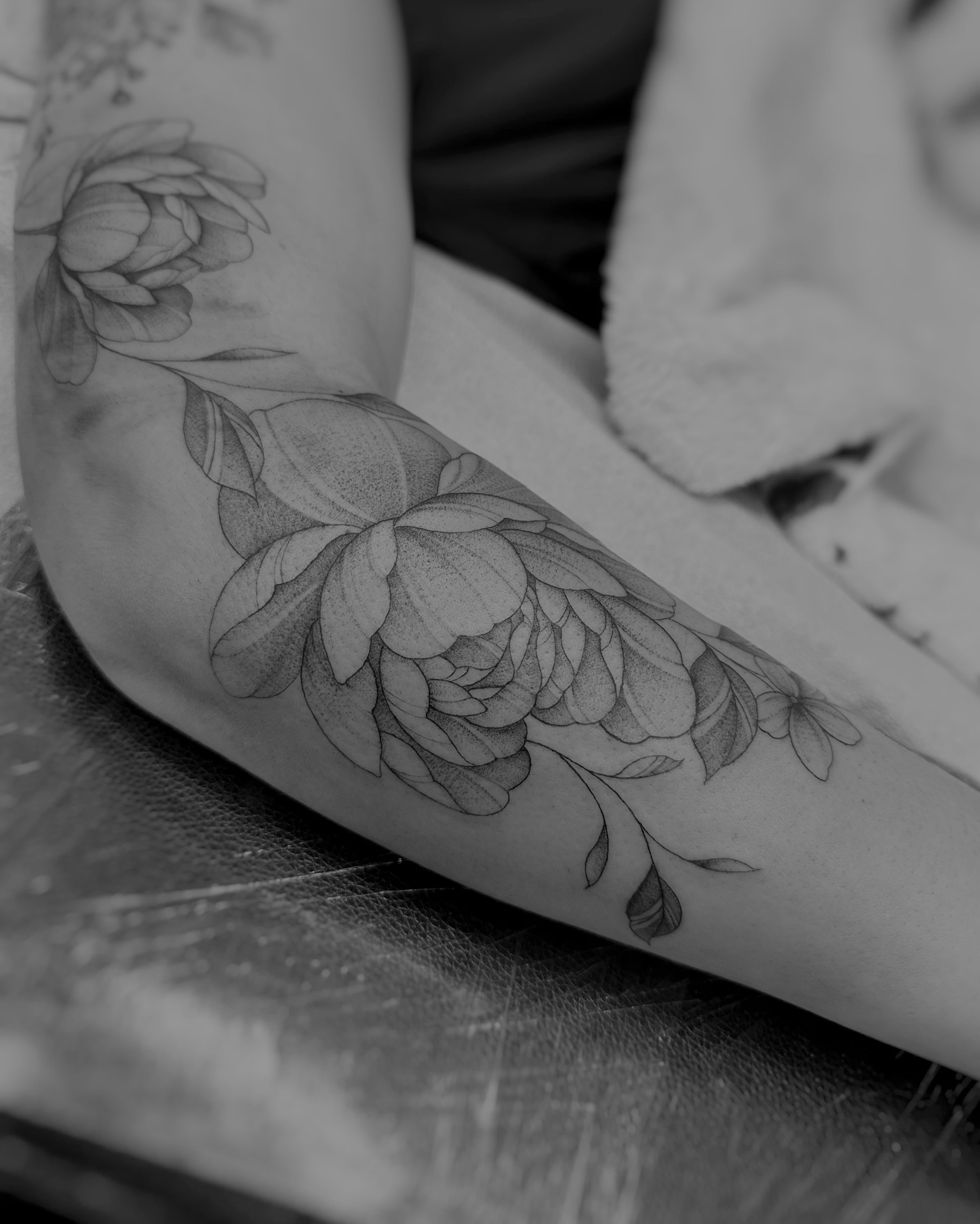 “ Having seen Jackie’s work out in the wild, I knew she was the artist I wanted to design and execute on my left sleeve. Jackie was the utmost professional, detailed and communicative during the design process of my sleeve. I provided her with an idea, and she turned it into a perfect reality. Her poise, dedication to her craft, thoughtfulness and care is expressed through her artistic touch. Having developed a great friendship with Jackie over our many sessions together, there is not doubt in my mind that she will be one of the worlds leading tattoo artists. Her unique style comes to life in her art. I am lucky to have her beautiful art with me forever.”